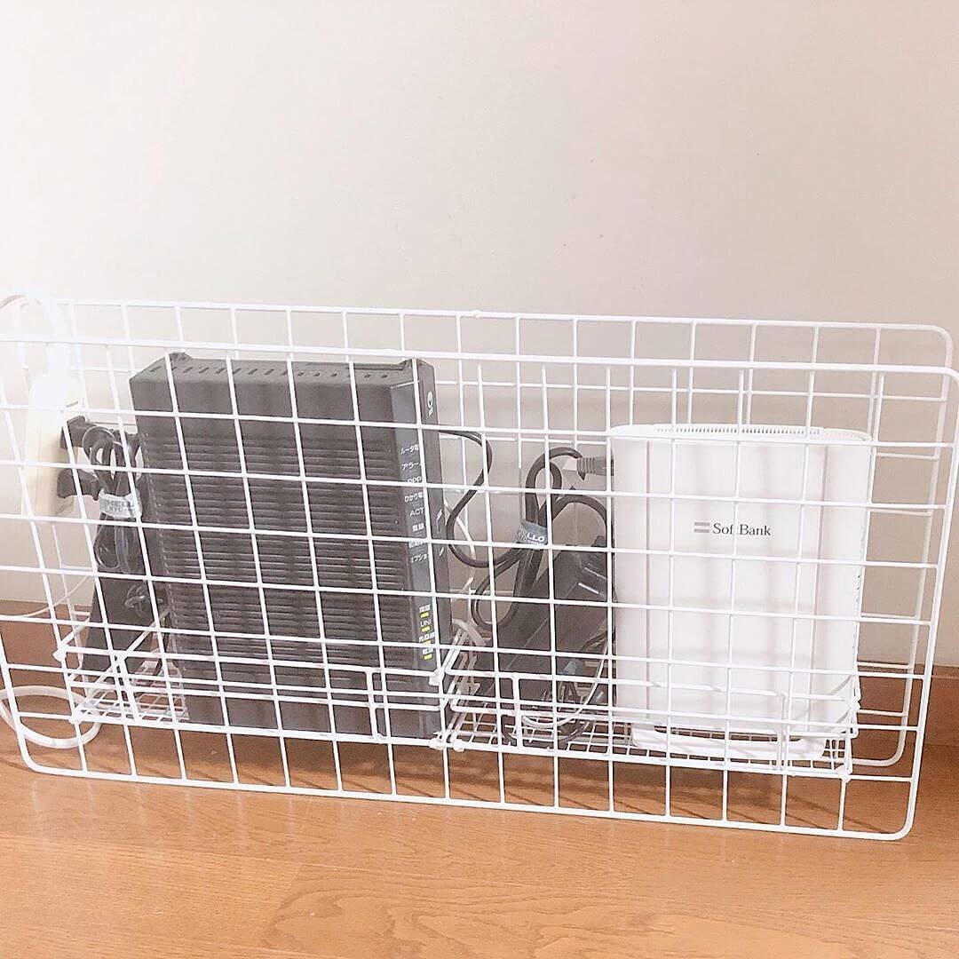 熱がこもらない!100均ワイヤーネットでルーター収納