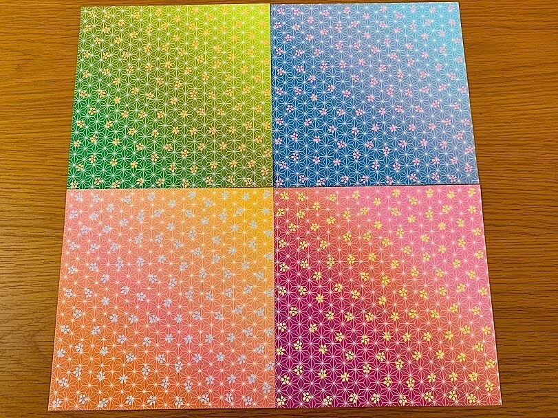 柄を変えたらポップにもシックにもなりますね。しばらく折り紙にはまりそうな予感。100円というクオリティをはるかに超えた折り紙だと言えます!