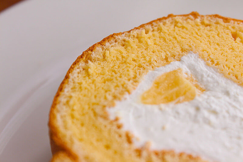 新鮮なこだわり卵を使用して、キメ細かく焼き上げた口溶けのよいスポンジで、たっぷりのホイップクリームとカスタードクリームをぐるりと巻いたロールケーキ。
