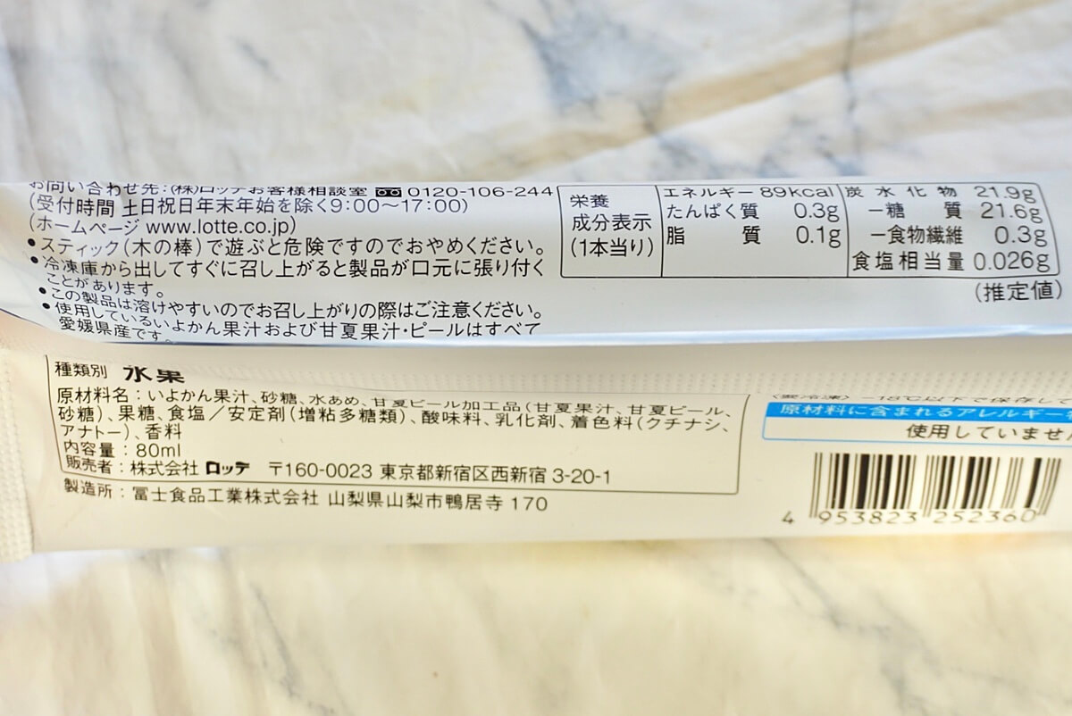 今回ご紹介するのはローソンの「愛媛県産伊予柑&甘夏」アイスバー。