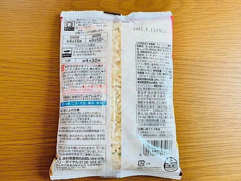 製造者は冷凍食品業界でも名の知れた味の素です。