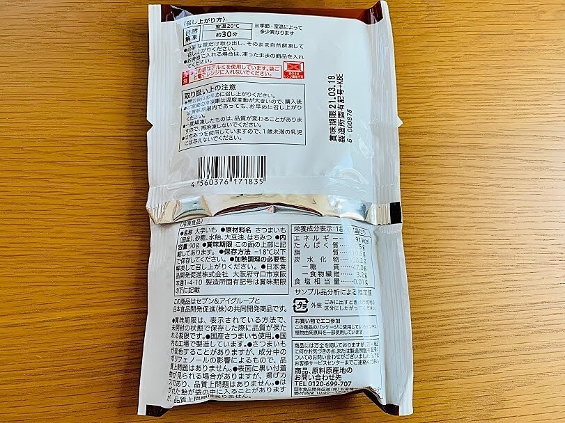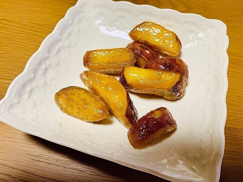 時々お惣菜などでスカスカの大学芋に当たることがあるのですが、これはほくほく。さつまいも食べてます!という感じ。甘さもちょうどいい!はちみつを加えた飴がしっかりと絡んでいて、この量でも大満足!!