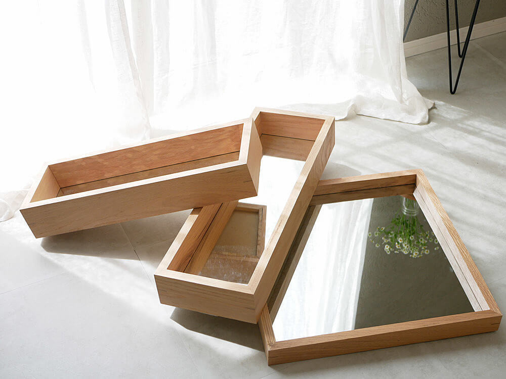 古くから高級材として家具材や床材に重宝された、オーク材を使ったミラー。