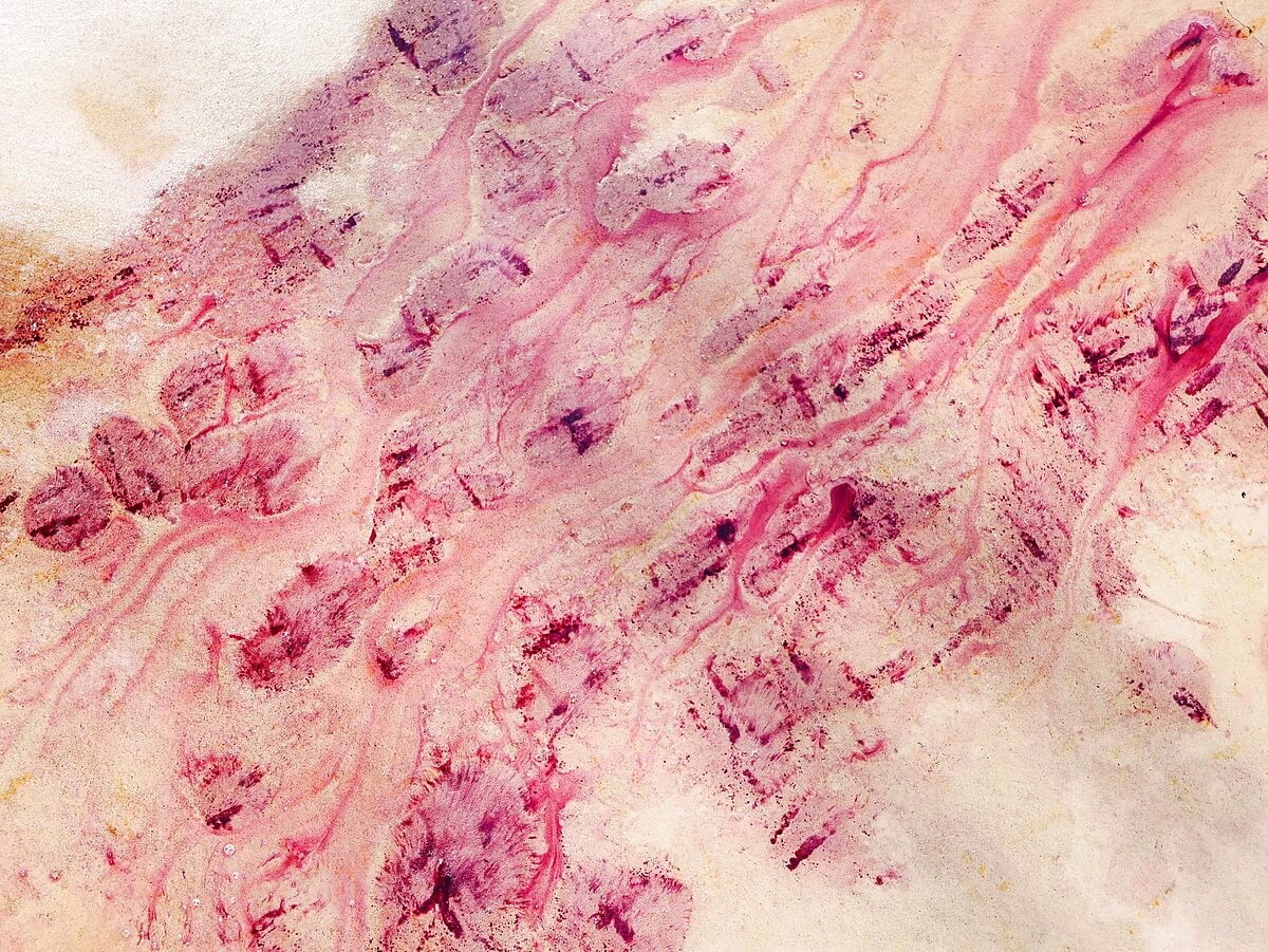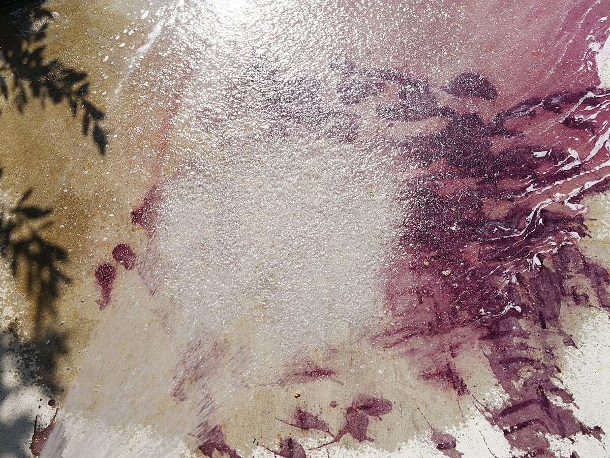 しっかりとブラシで擦り、赤紫がなくなるまで擦ります。