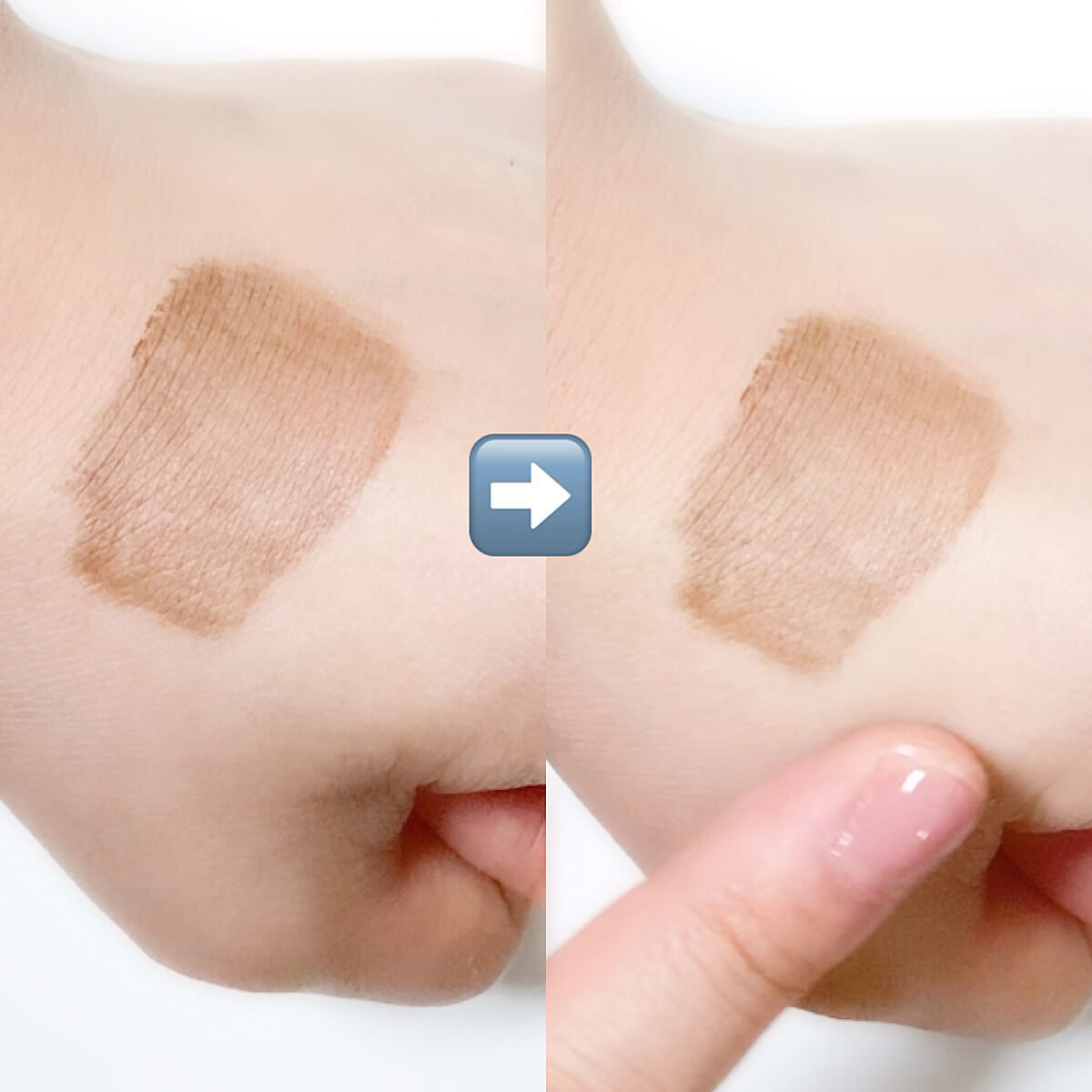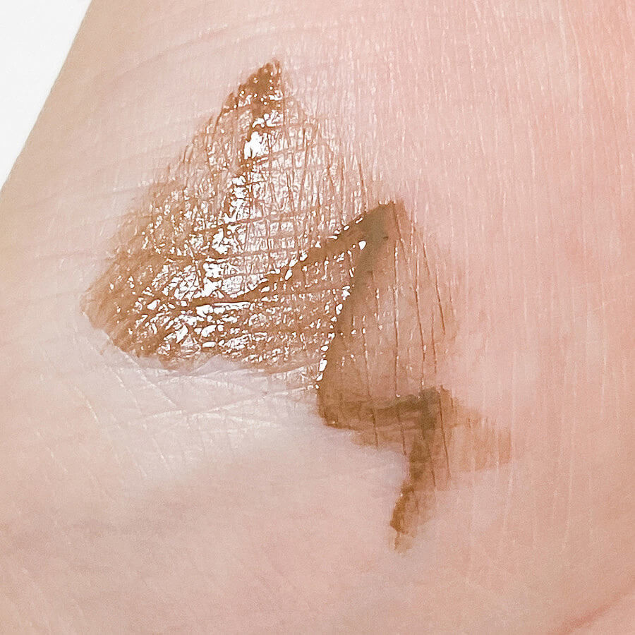 手につけてみた「マルチプルーフ アイブロウ」を指でこすってみました。
