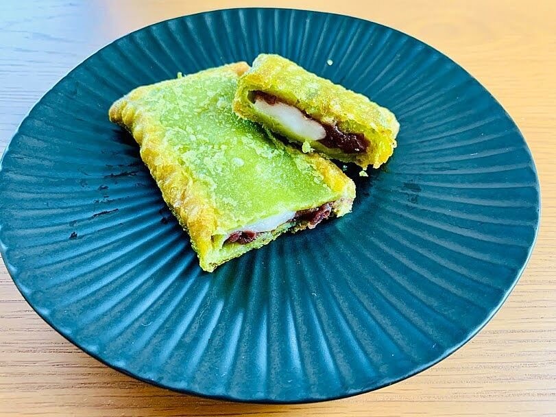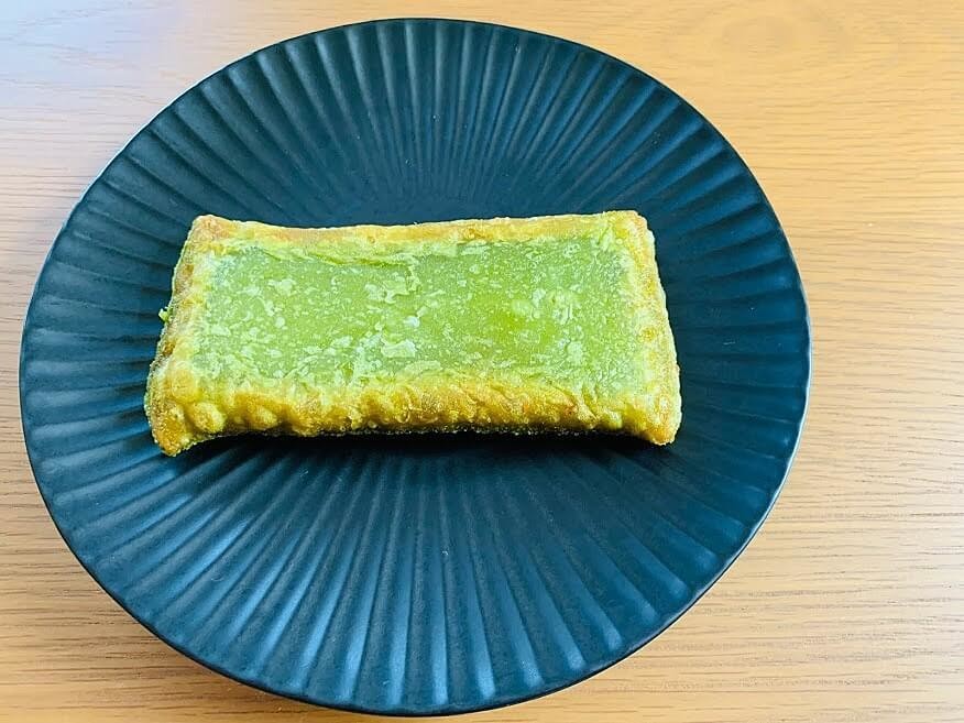 外の生地はちゃんと苦みも感じる抹茶味。中のあんこの甘さと生地の苦みとのバランスがいい!そして外の生地の厚さがまた絶妙……。存在感もあるけど主張しすぎていない。中身を引き立てつつパイ食べてます感も感じる!