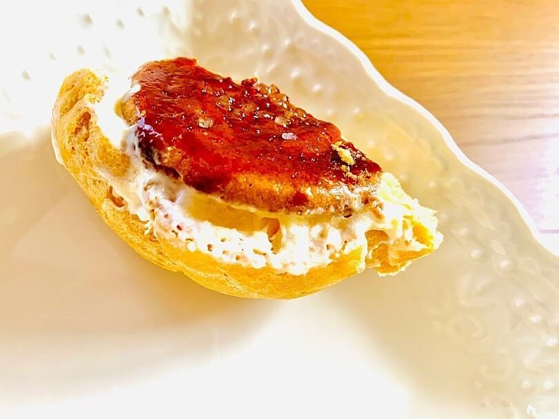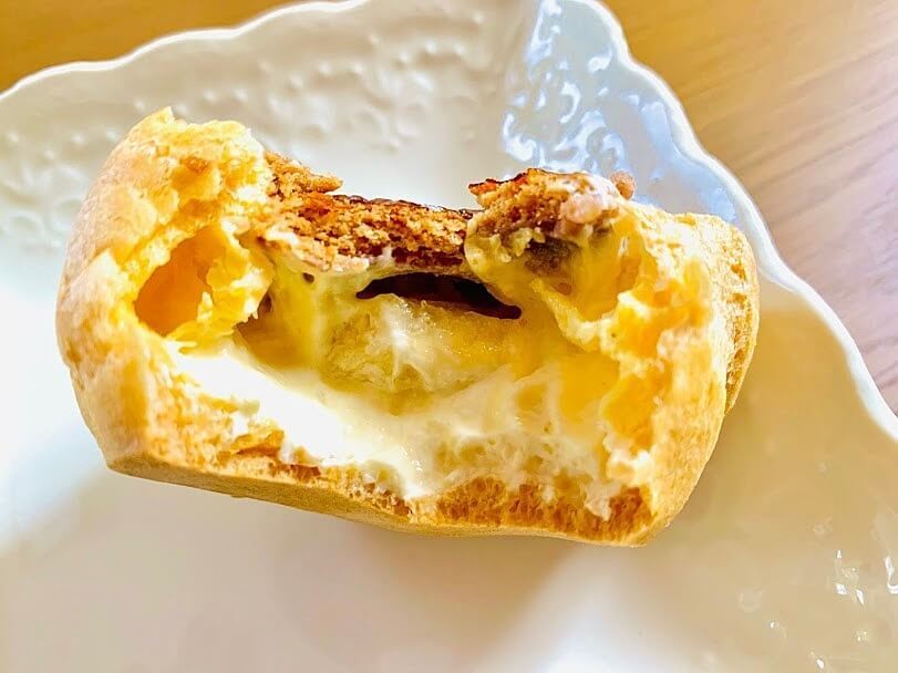 前から食べると後ろからクリームが飛び出します。それくらいクリームがたっぷり入っています。最後までクリームとシュー生地との相性を楽しみながら完食できました!