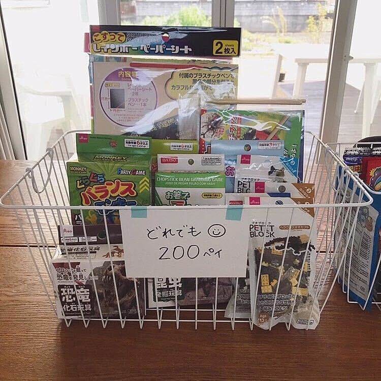 家にある100均のおもちゃやおやつをママペイと交換して遊んでいます(100均にも行けないと思うので家にあるものやネット通販などをご活用ください)。