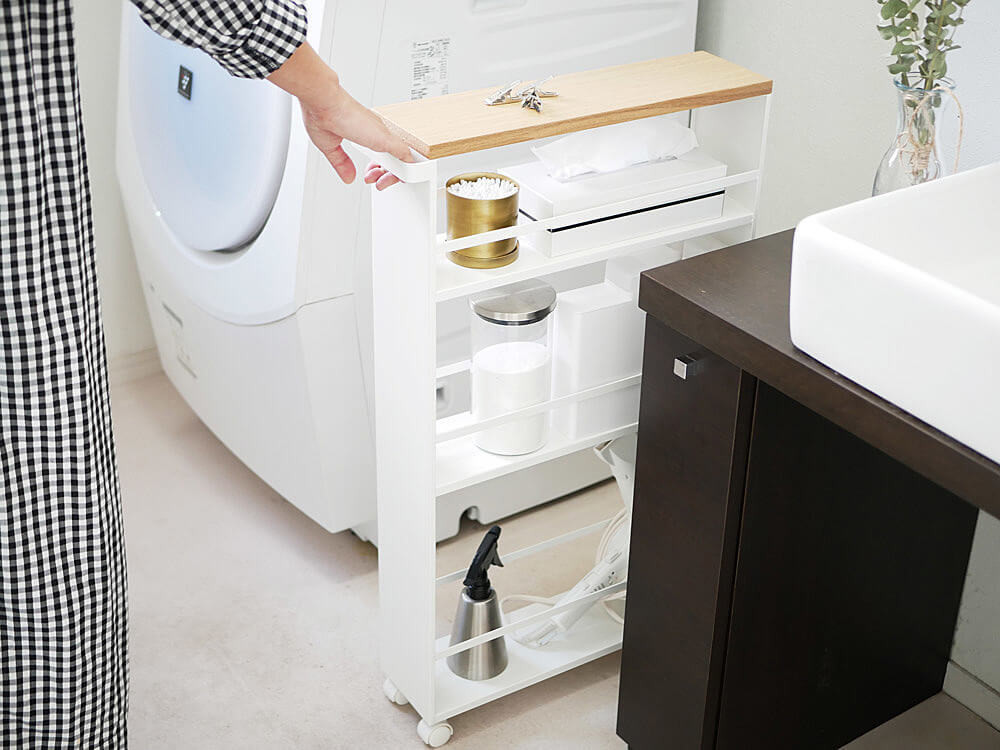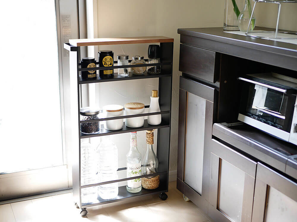 その隙間を収納で有効活用!スタイリッシュなデザインが人気のYAMAZAKIスリムワゴン