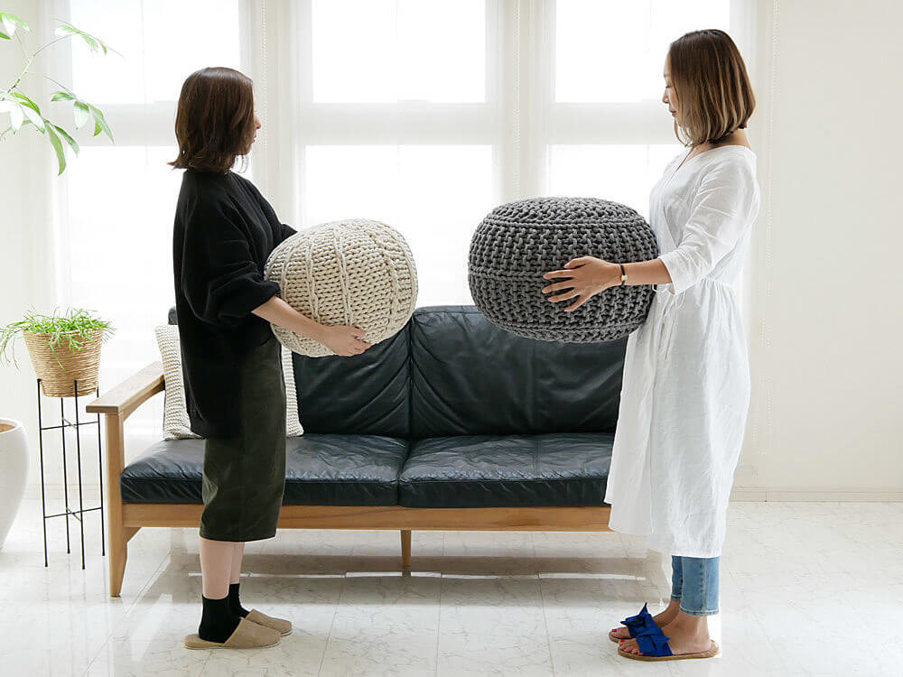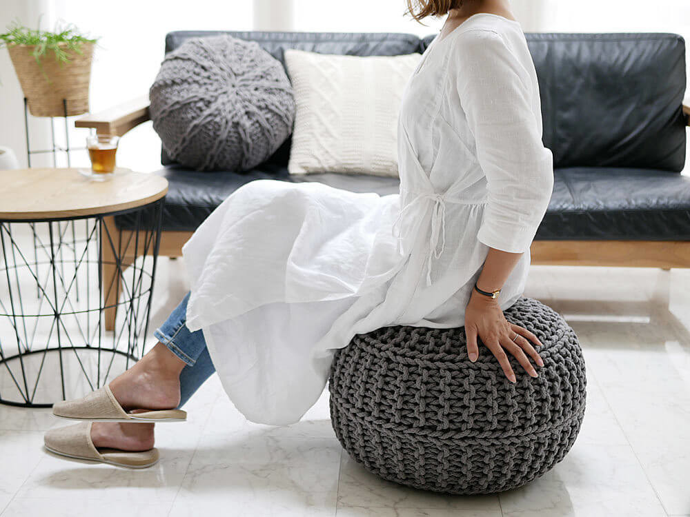 インド職人のハンドメイドに”ほっこり”♪ナチュラルインテリアに欠かせない「ニットプフ」とは