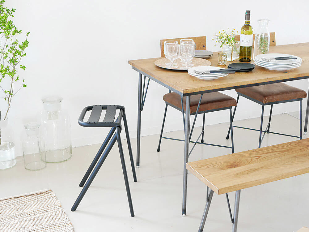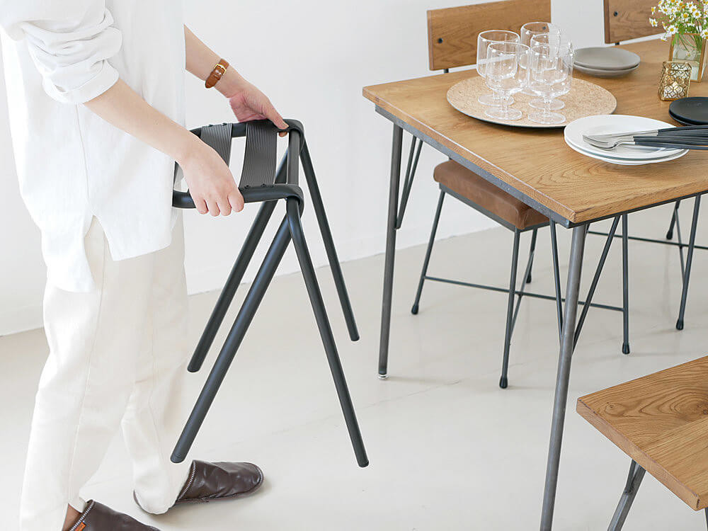 背もたれやひじ掛けが無い分作りがシンプルで、複数並べても圧迫感を感じません。サッと出しても様になるデザインが目を惹きますよ。