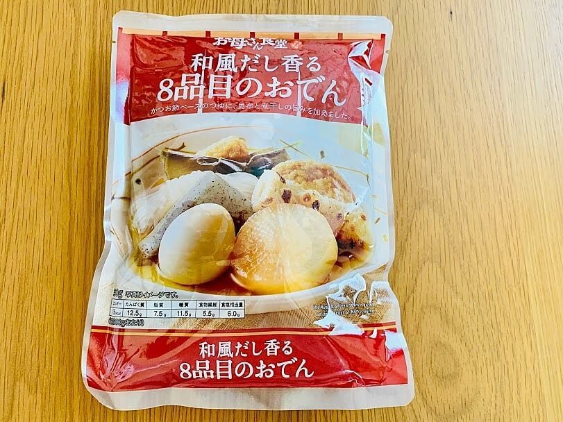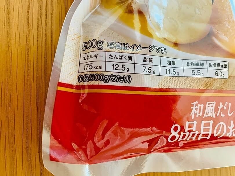 なんとなんと、8種類も入ってカロリーはたったの175kcal!お財布にも胃袋にも優しいなんて。レジ前おでんよりは1つ1つが小さめですが、その分色々な種類が食べられてお得な気がします。だって1つあたり約26円ですよ。