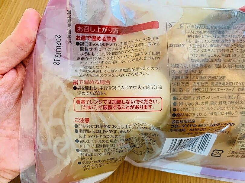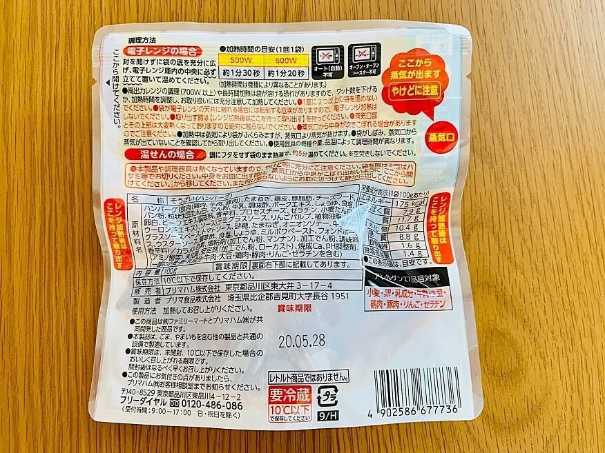 調理方法は電子レンジでも湯煎でもOK。電子レンジの場合は必ず立てて置いてください、とのことです。