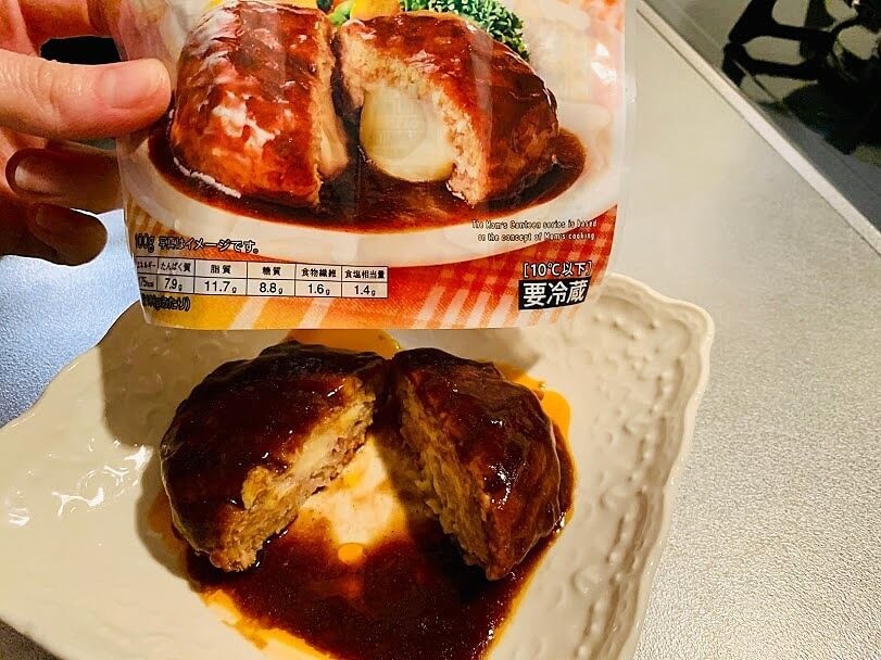 先日セブンイレブンのチーズインハンバーグを食べたので、味に違いがあるのかな?と気になったのであえて同じメニューを。