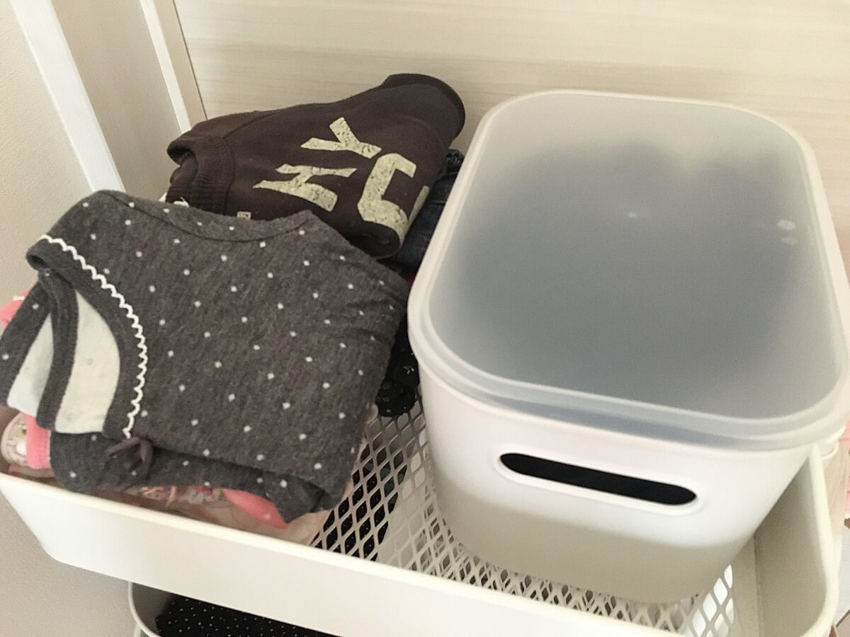 長女・次女の下着をワゴンにそのまま置いていたのですが、お年頃になってきたので目隠しのためにやわらかポリエチレンケース・ハーフを置くことにしました。