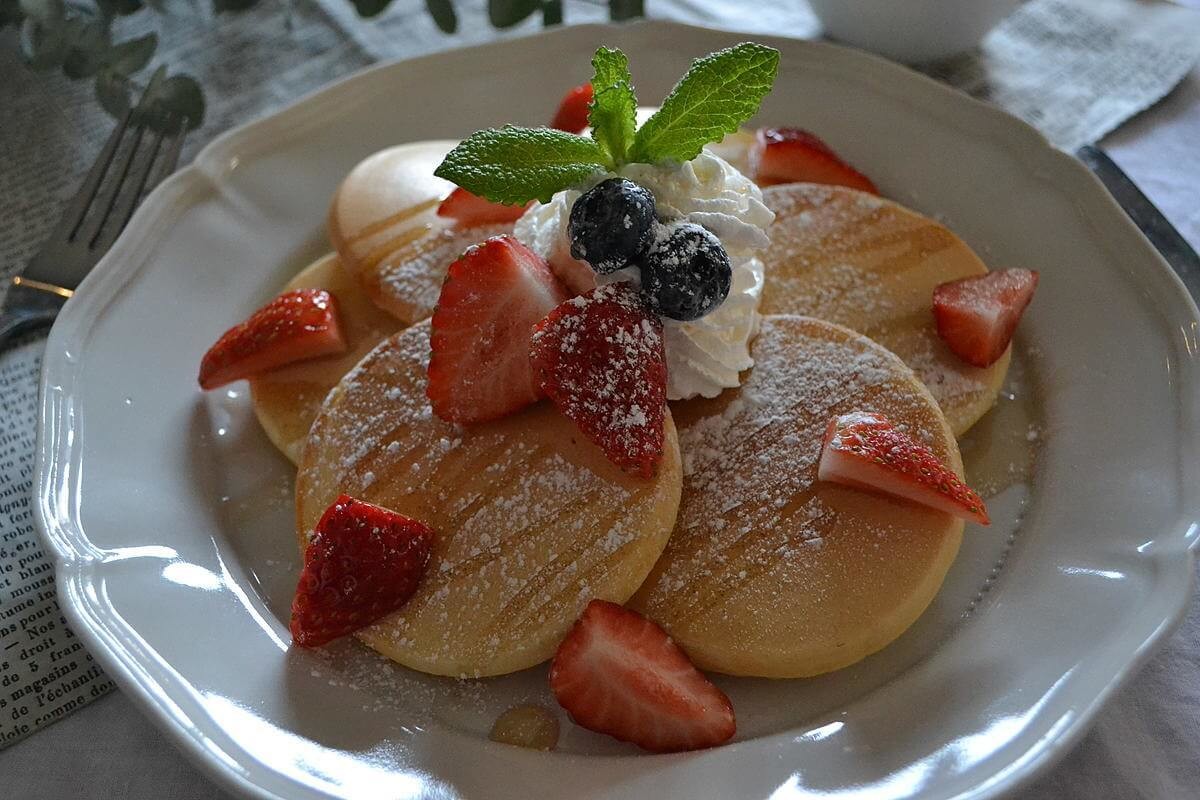 シロップやフルーツなどをトッピングした、甘いパンケーキは子どもたちに大人気です。