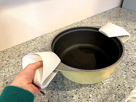 浅めの作りなのが特徴なので、オーブンの出し入れ・熱い鍋の蓋の開け閉めなどで活用しています。