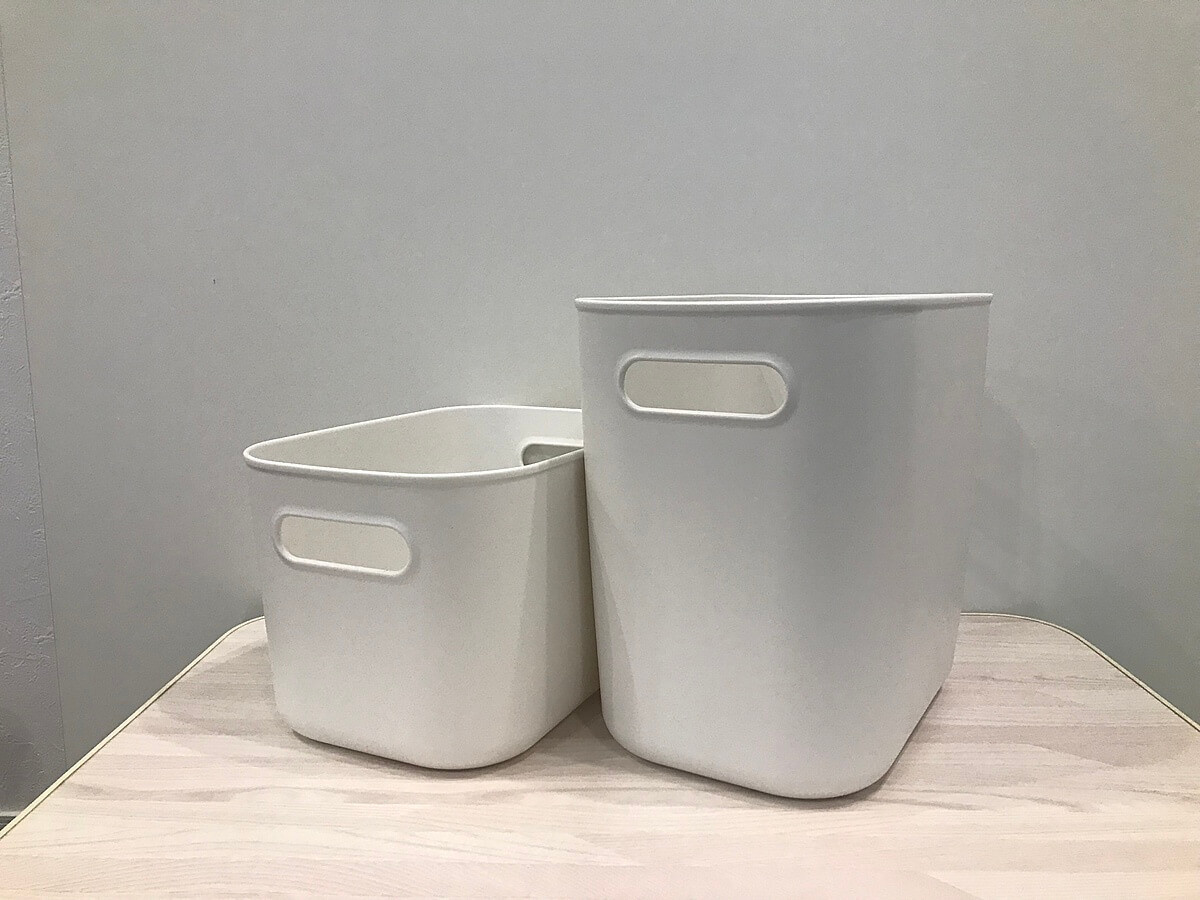 スタンダードタイプはしっかりと四方に高さがあるので細々したものが入れやすいのはもちろんなのですが、硬くしっかりとした素材で直角なのを生かして、少し重さのあるものや、箱に入った食品もいれやすいのが特徴です。