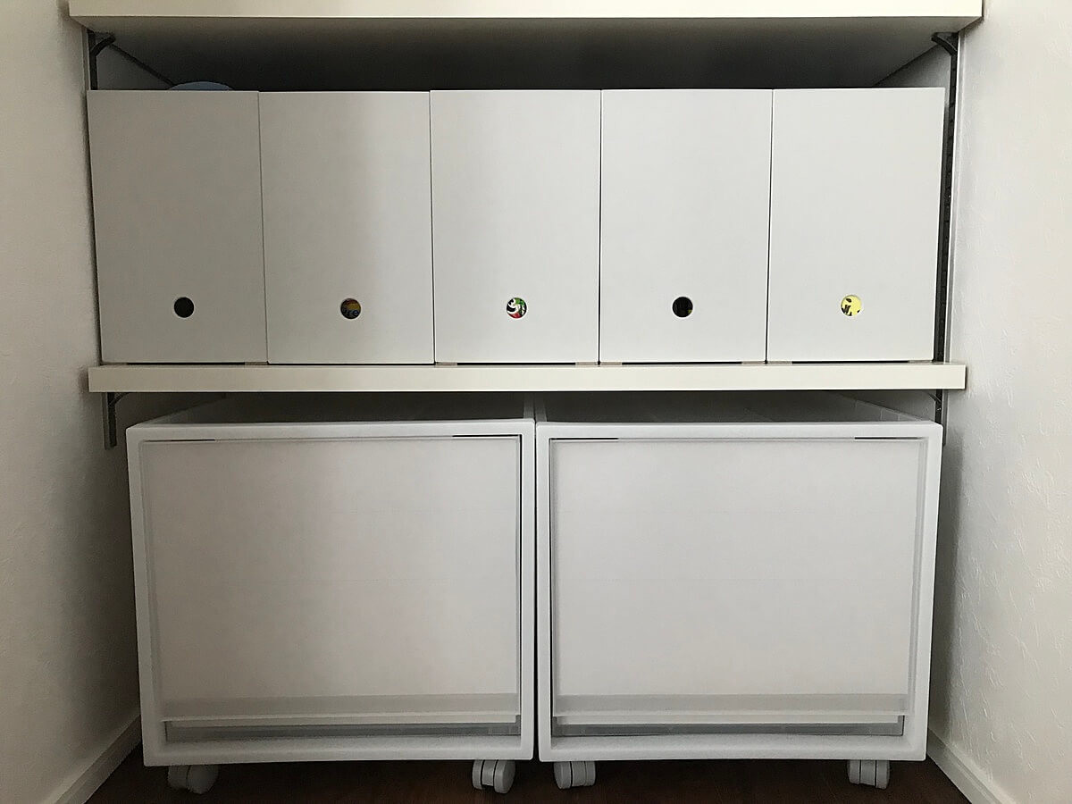 こちらのケースは本来クリアで少し中が見えますので、もし気になって我が家のように中身が見えないようにしたい方はよければそちらも記事を詳しく書いております。 ⇒【ネット限定】ポリプロピレン収納ケース用フロントインデックス