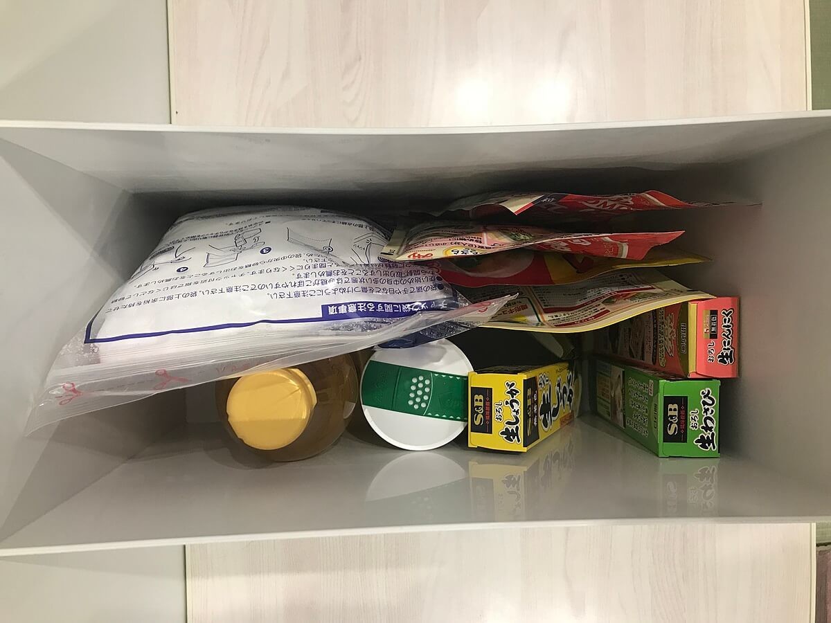 調味料や油、使いかけのペーパー類、高さのある食品も使いやすいです。