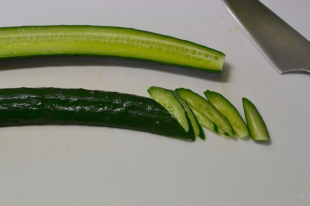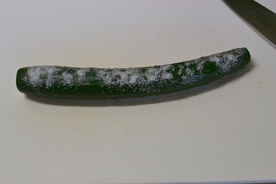 ※板ずりすると表面のいぼが取れ味がしみ込みやすくなり、青臭さが抜けます。