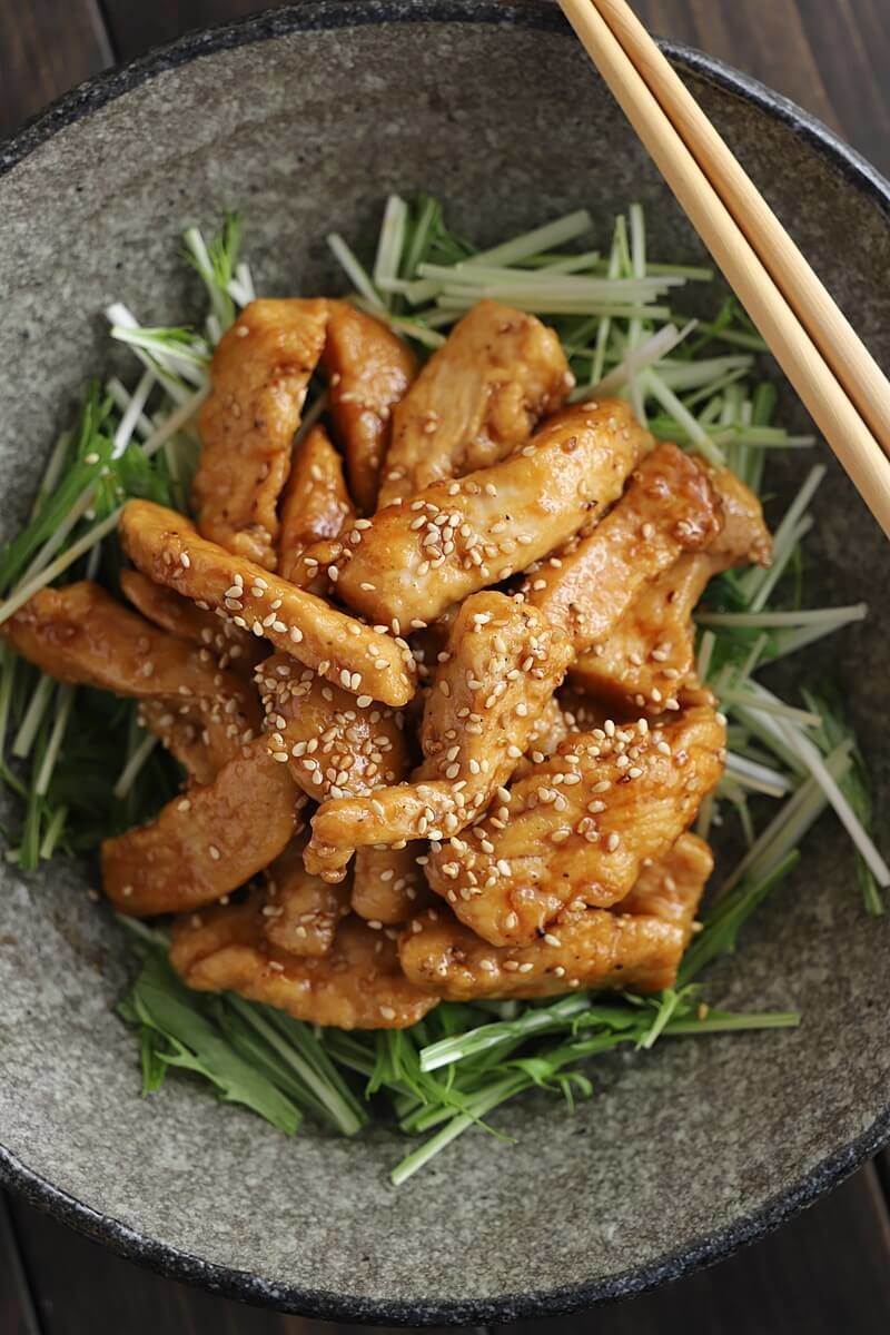 ポン酢と砂糖少々の組み合わせは鶏むね肉だけはなく、鶏もも肉や、豚肉にもよく合います。