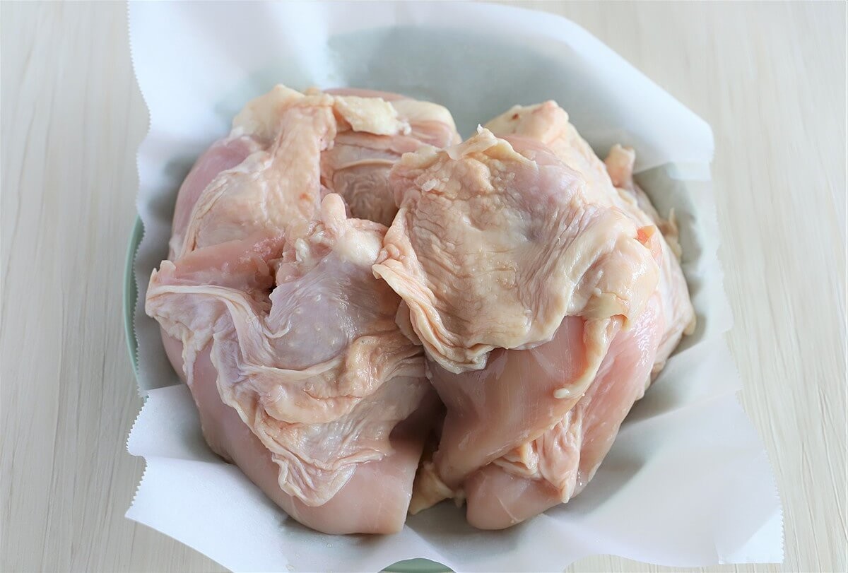 ①鶏むね肉はレンジで加熱中に、「パン!」と跳ねる恐れがあります。