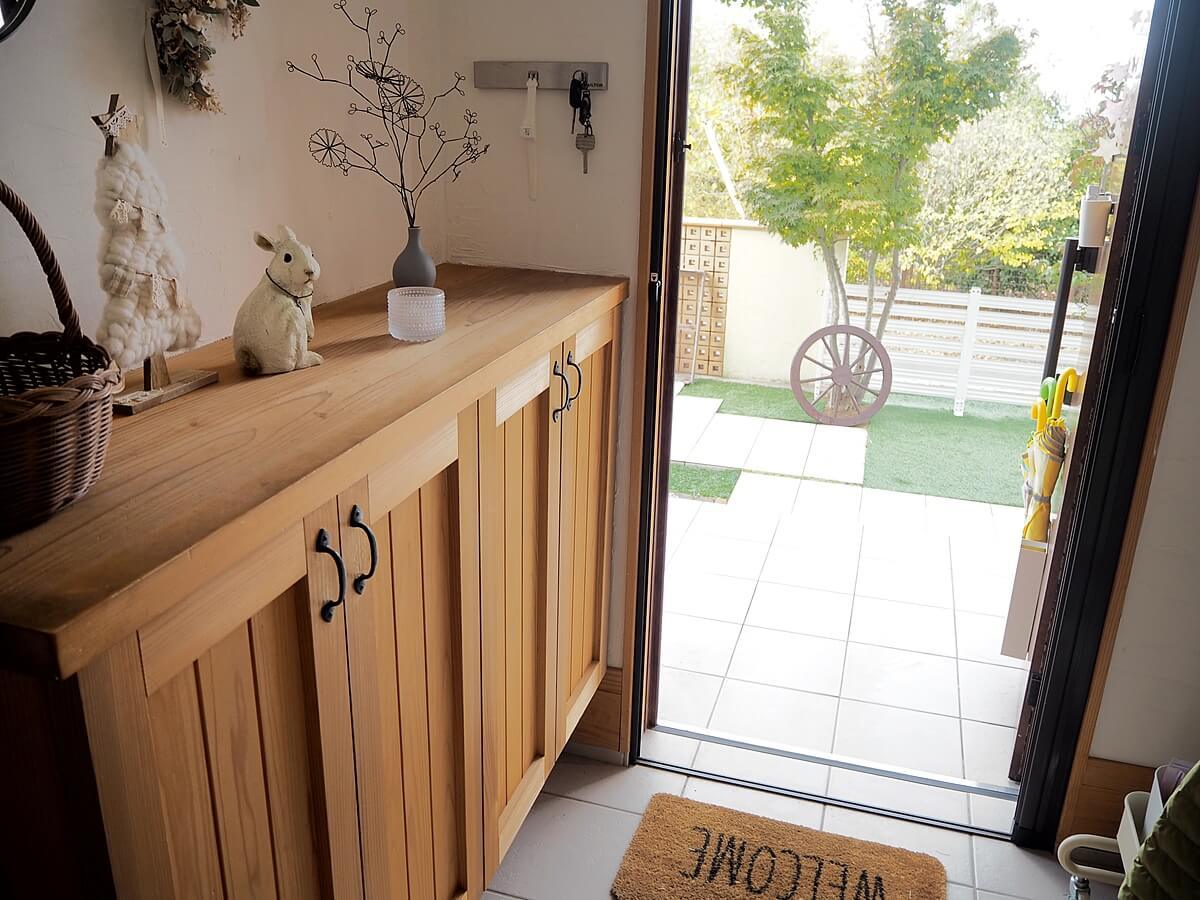玄関にも見た目にこだわりながら収納を楽しんでいる箇所があります。