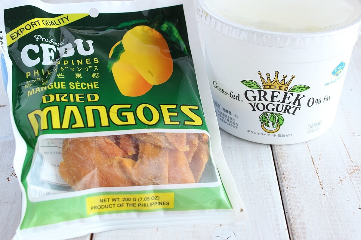 ドライマンゴーをカットして、ギリシャヨーグルトを入れ一晩置けば