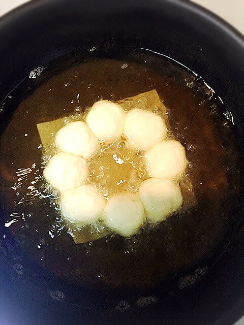 後は、冷めても固くならないように入れているのが、お豆腐です。