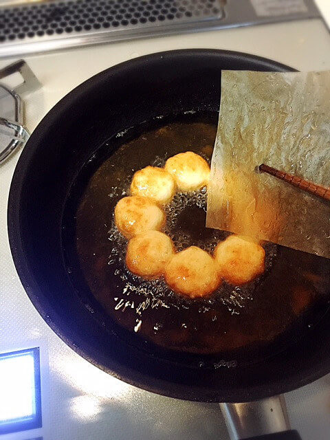 4、片面2分弱くらいきつね色になるまで揚げて、