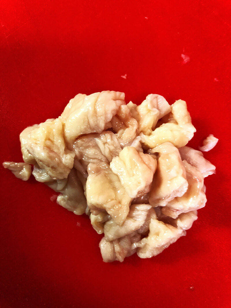 2、1の剥いだ皮を1cm角くらいの大きさに 切ります。