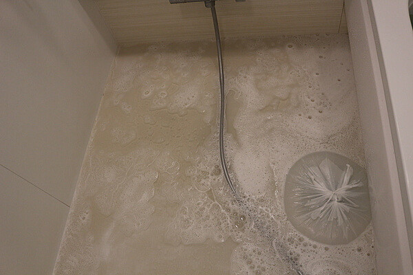 ”オキシ漬け”した浴槽のお湯を流した後、お湯はりをしてみると、白い泡が……。