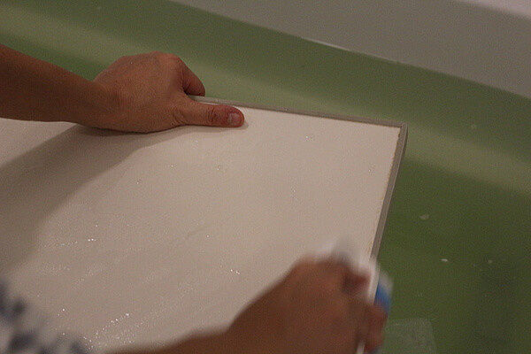 早速、オキシクリーンを使ってタイルにお湯をはってみました。