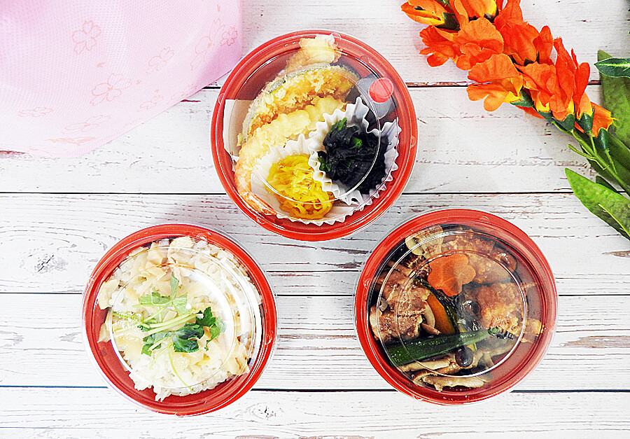 夢庵の行楽弁当は容器が3つにわかれていますが、それぞれの容器が小振りなので、オードブルのようなボリューム感はありません。
