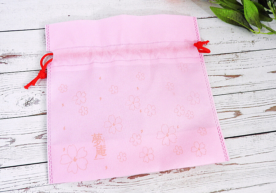 行楽弁当は、夢庵オリジナルの可愛らしい桜色の袋に入っています。