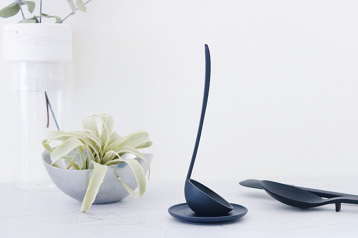 こちらも自立式のお玉で受け皿も付いているのでキッチン周りで場所を選ぶ事なくまた受け皿は味見皿として使う事も出来るのですごく便利なんです。