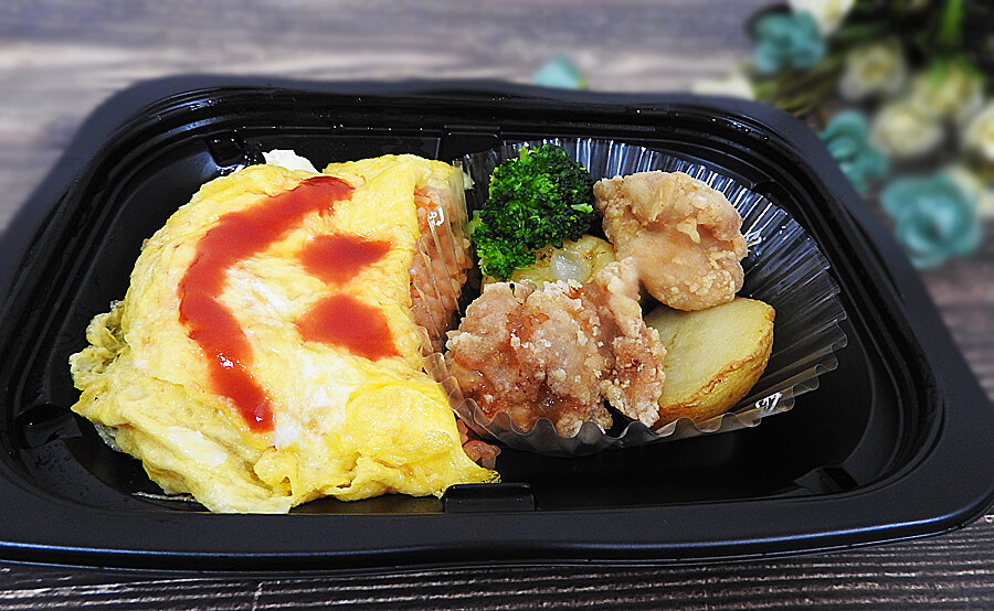 子ども用のお弁当としておすすめなのが大戸屋の「お子様オムライス弁当」510円(税込)。メインはオムライス。おかずは、ブロッコリーとじゃがいも、竜田揚げが入っていました。