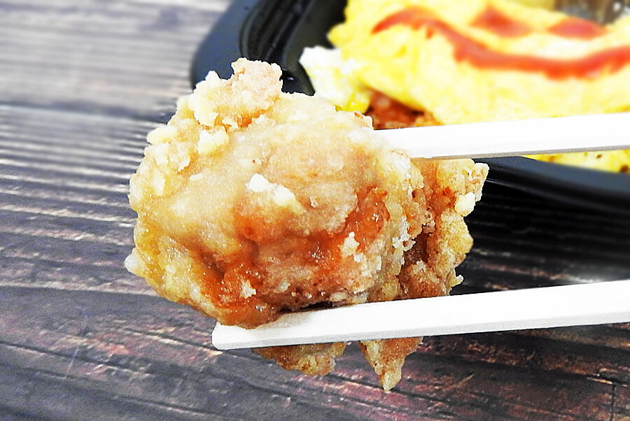 オムライスは良かったのですが、一緒に入っていた竜田揚げがパサついていたのが残念でした。2歳の子どもは噛み切れませんでしたので、結局細かく切ることに……。
