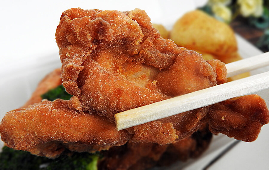 米粉竜田チキンを食べていて感じたのは「かたくて食べにくい」という点。衣はパリパリとしていて歯ごたえが良いですが、中身はよく噛まないとお肉がなくなりません。