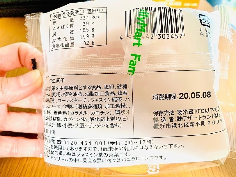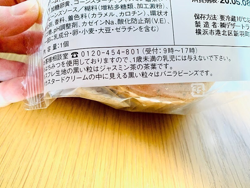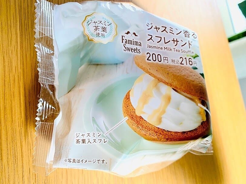 ジャスミン茶葉使用とのこと。スフレ生地に練りこんでいるのですね。