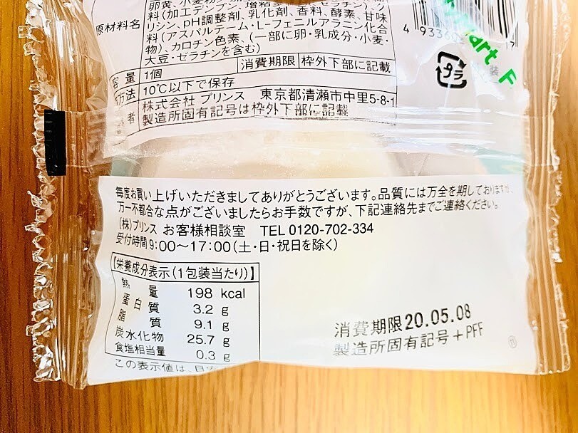 カロリーは198kcal。大福なのでこれくらいが妥当かなと思います。中身が生クリームやあんこだともう少し高くなるかもしれませんね。200kcalを切っているので、おやつにもデザートにもありですね♪