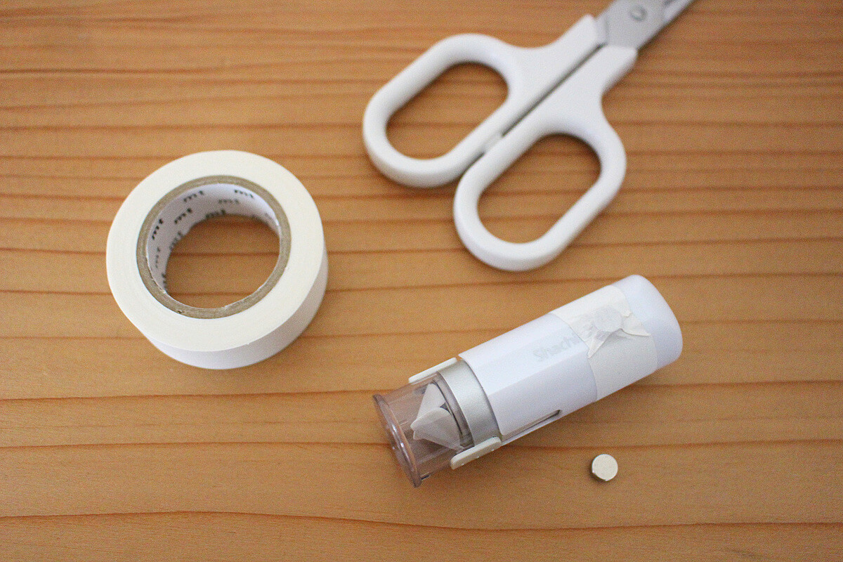 マステでマグネットを巻き付けてあります。この場所にしてから、配達の荷物の受け取りがとてもスムーズになりました。