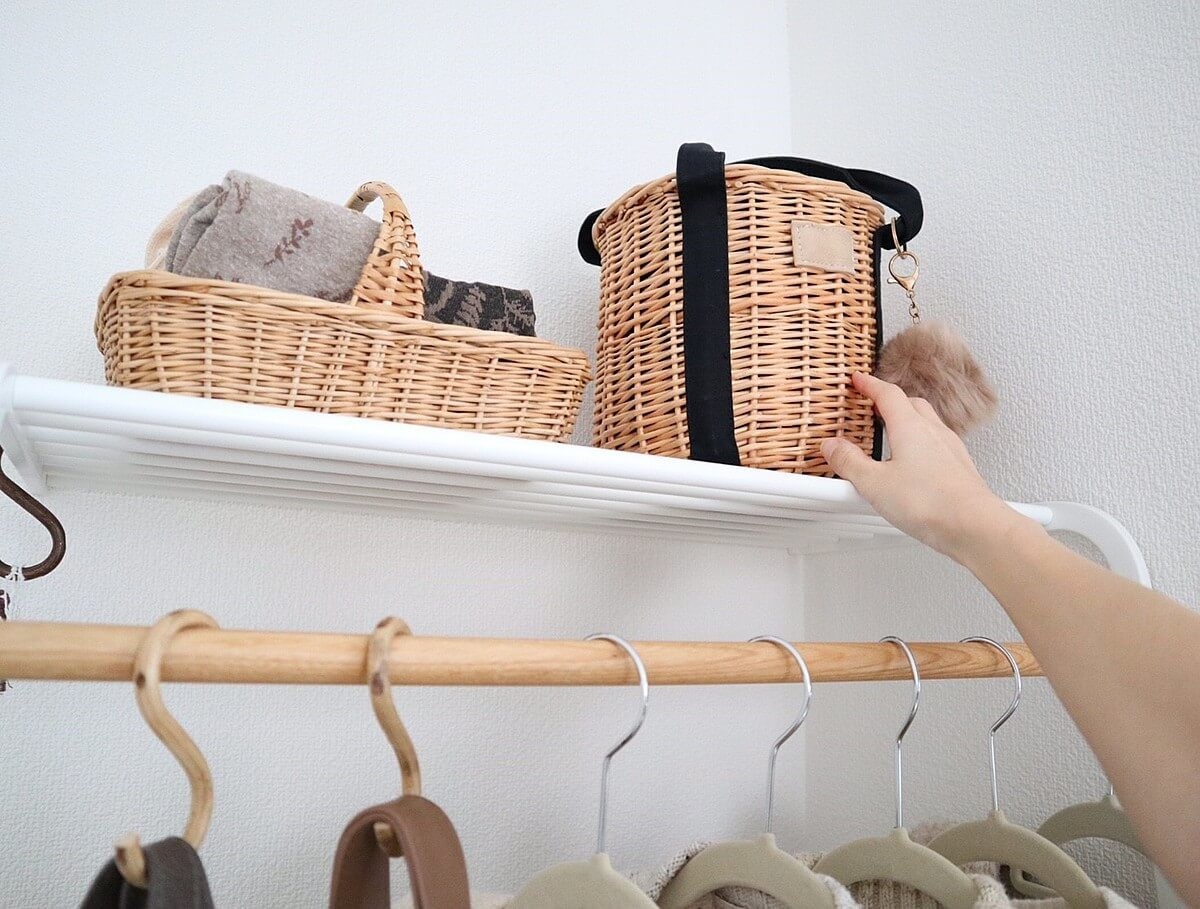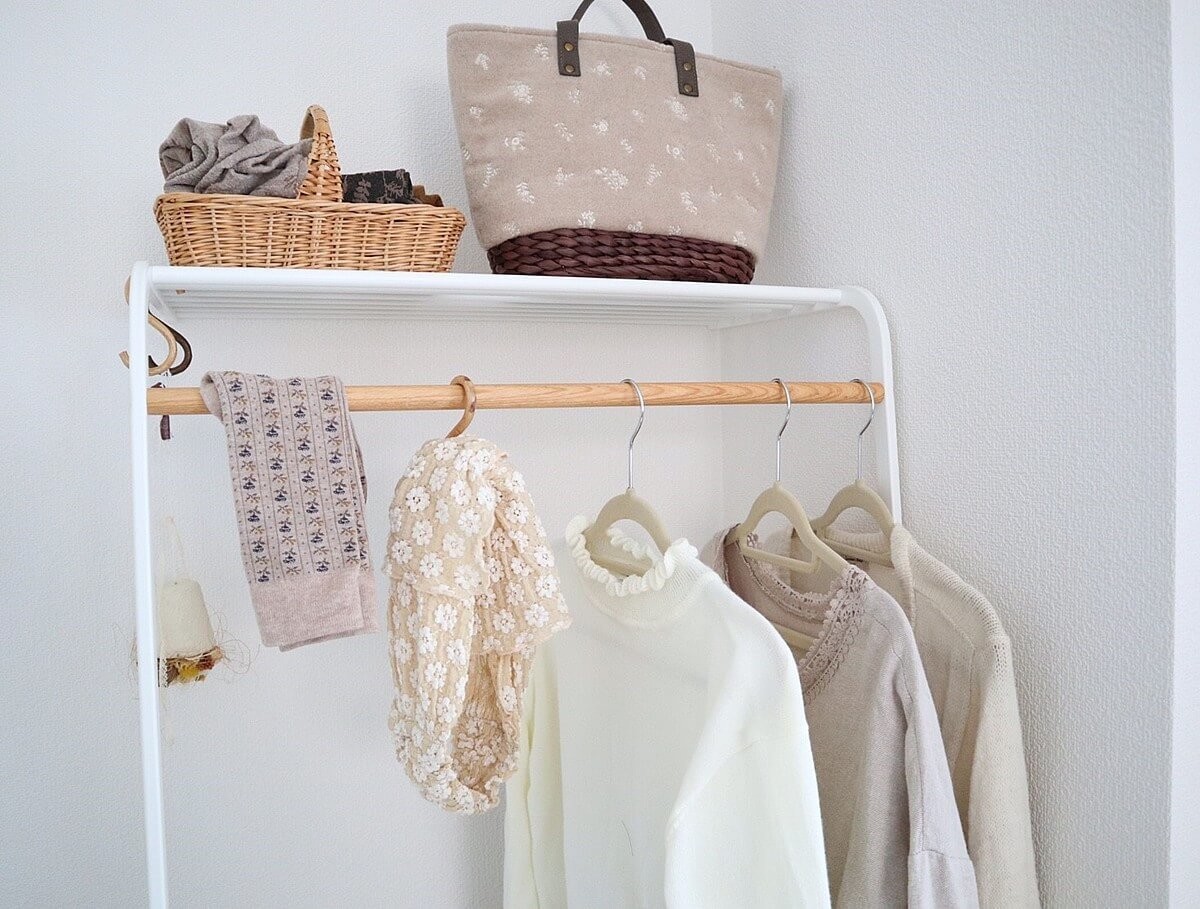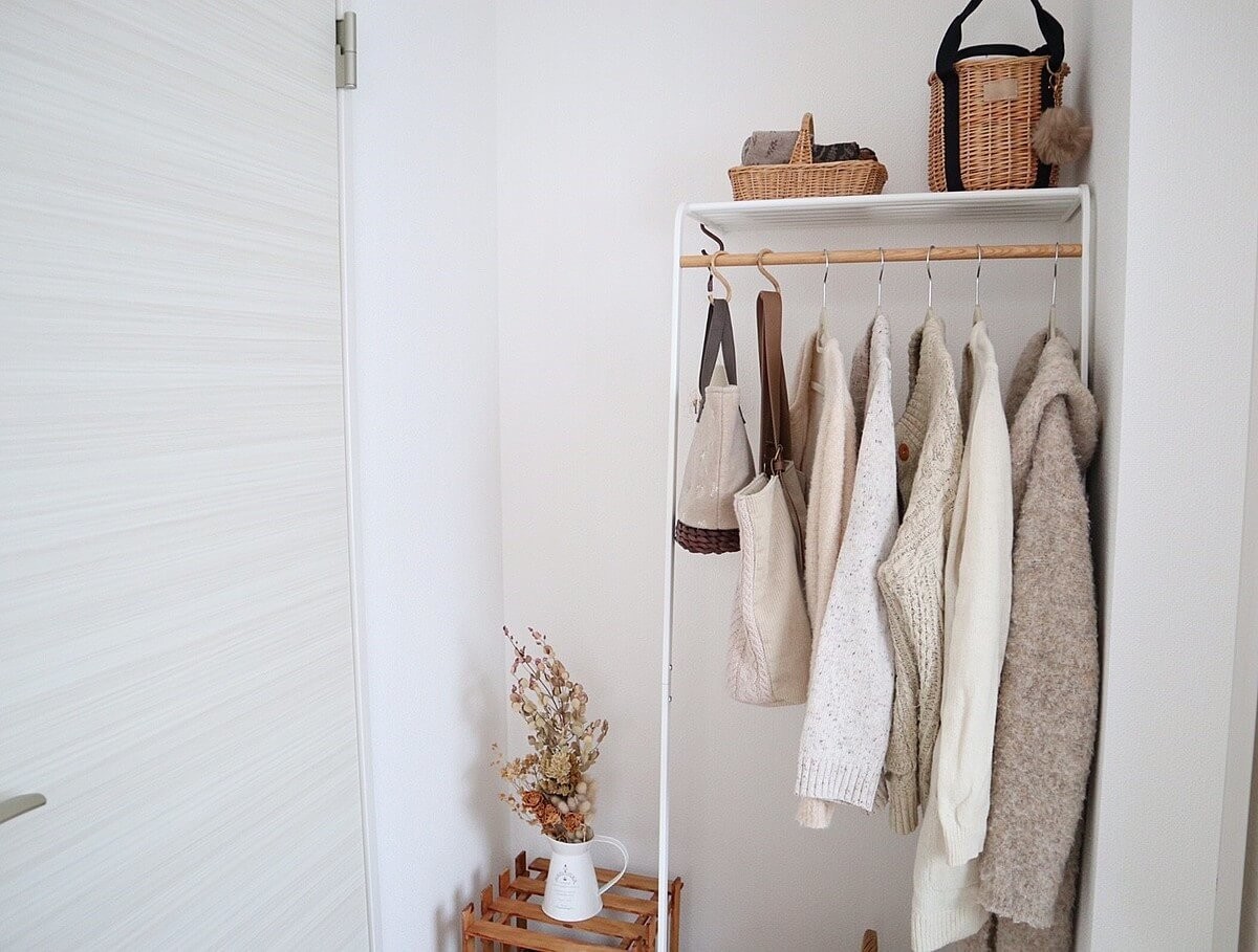 次の日に着ていくお洋服をまとめてラックとシェルフを活用して置くと、身支度がよりスムーズになるかもしれません。