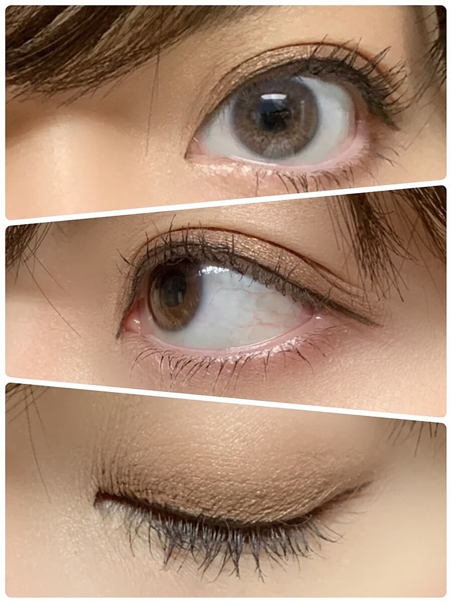 アイホールには明るめのベージュと塗り、中間色にピンクアイシャドウをオン。ぼやけた印象にならないように、締め色には濃いめのピンクブラウンを使うのがポイントです。