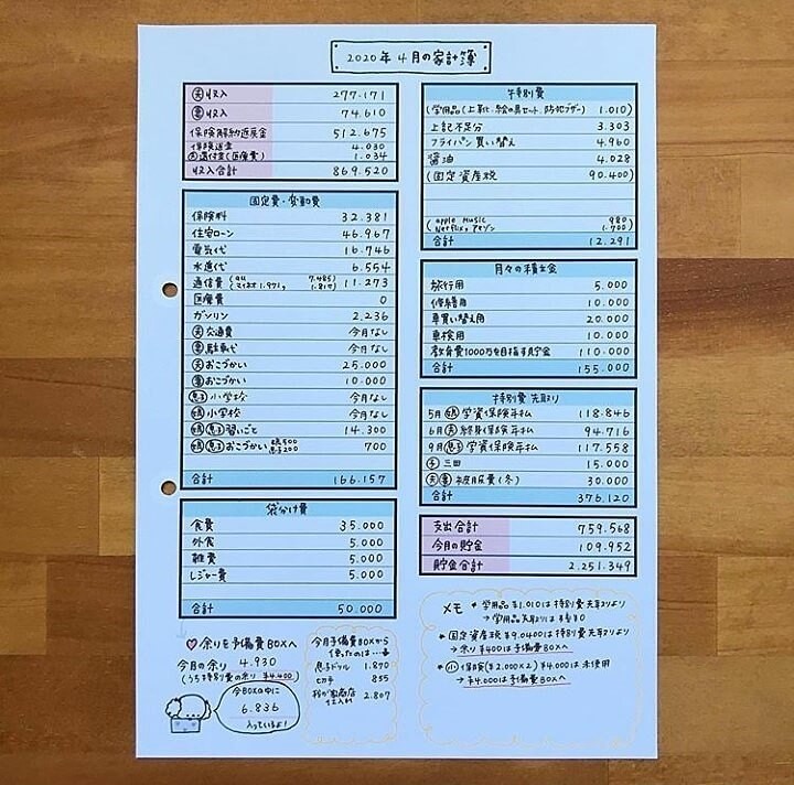 愛用の家計簿:『づんの家計簿』をベースとしたオリジナルアレンジ家計簿