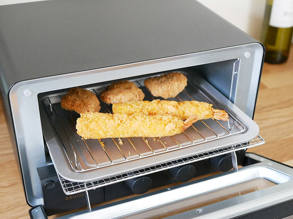 また、ノンフライ調理や揚げ物の温め直しの際は、ベイキングトレイに付属の焼き網を乗せて使うとカラッとした仕上がりになるんです。