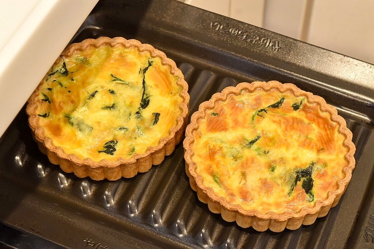 その後オーブントースターまたはオーブンでタルト生地がサクッとする程度に焼きます。わが家はコンロについているグリルで焼きました。