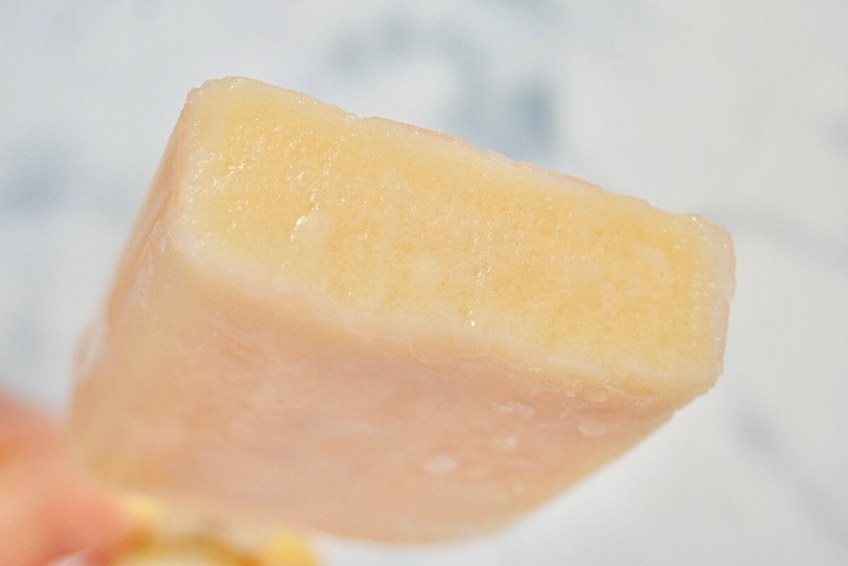 薄皮がパリッとしていて、中はもっちり。ねっちりとした食感。かつ、シャーベット感もきちんとあるアイスバーです。