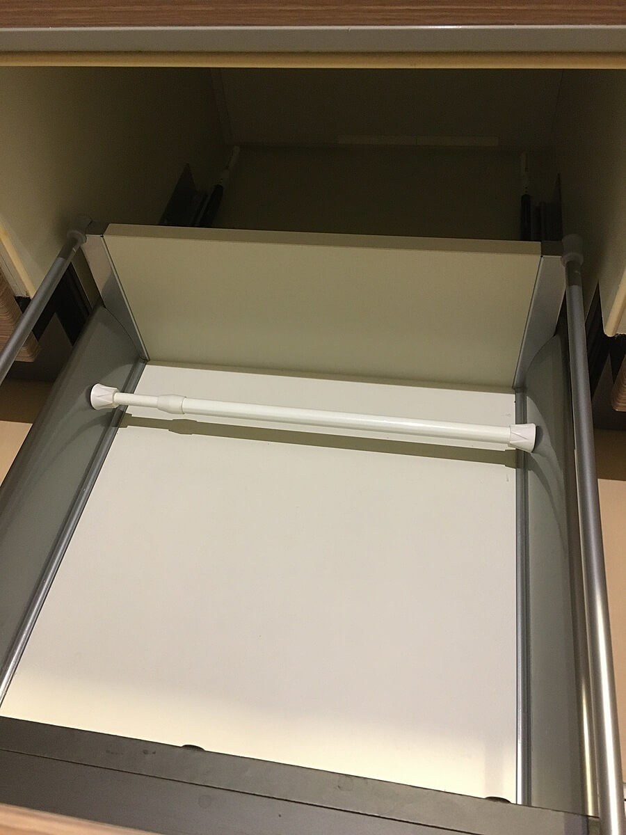 私が考えた方法は、引き出しにつっぱり棒を1本張る方法。